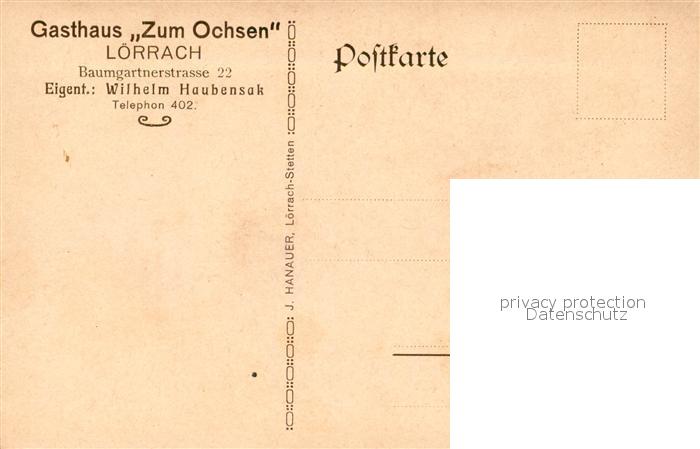 33549672 Loerrach Gasthaus zum Ochsen Gartenwirtschaft Kegelbahn postalisch nicht gelaufen Erhaltung siehe scans [KathaD81] KatCode: 11110008336050
