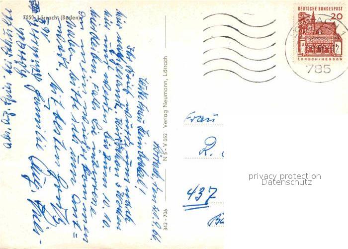 72654752 alte Postkarte Loerrach Rathaus Burgruine Roetteln Marktplatz Zundlbrunnen Hebelplatz postalisch gelaufen Erhaltung siehe scans [AndreD76] KatCode: 11110008336050