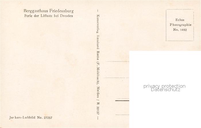 73821012 Loessnitz Dresden Berggasthaus Friedensburg Fliegeraufnahme postalisch nicht gelaufen Erhaltung siehe scans [FriedD77] KatCode: 11110014262000