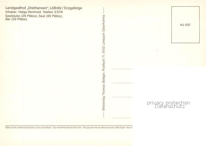73364339 Loessnitz Erzgebirge Landgasthof Dreihansen postalisch nicht gelaufen Erhaltung siehe scans [FriedD77] KatCode: 11110014191220