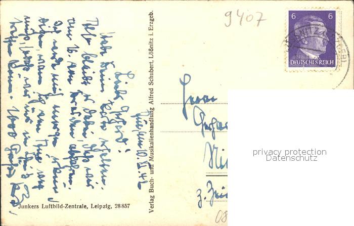 31706046 alte Postkarte Loessnitz Erzgebirge Stadtmitte Kirche Fliegeraufnahme Junkers Luftbild Nr. 28857 postalisch gelaufen Erhaltung siehe scans KatCode: 11110014191220