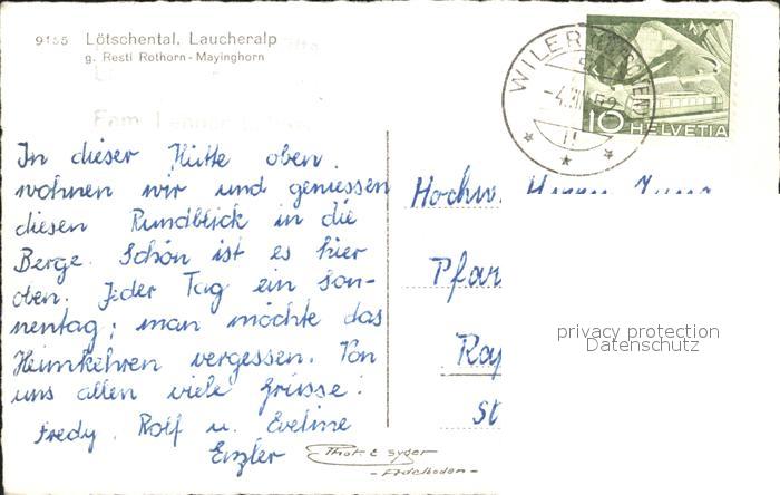 12346152 alte Postkarte Loetschental Laucheralp mit Resti Rothorn Mayinghorn postalisch gelaufen Erhaltung siehe scans KatCode: 11470230730544