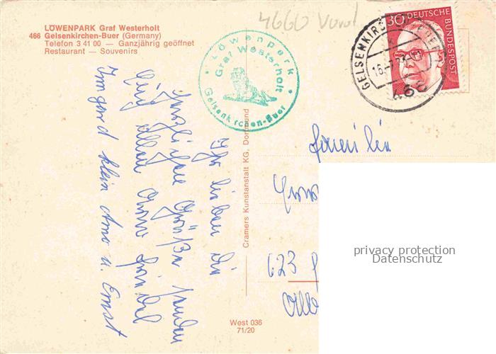 74096520 alte Postkarte Loewe Lion– Graf Westerholt Gelsenkirchen Buer postalisch gelaufen Erhaltung siehe scans [SanaeD93] KatCode: 22540000003300