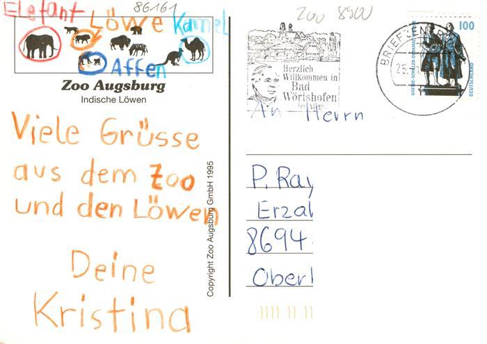 alte Postkarte Loewe Lion– Indische Zoo Augsburg postalisch gelaufen Erhaltung siehe scans [IrynaD87]