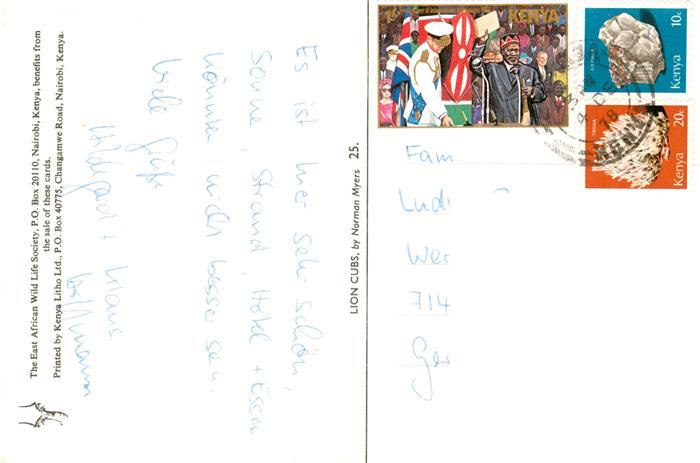 alte Postkarte Loewe Lion– The East African Wild Life Socley Loewen postalisch gelaufen Erhaltung siehe scans [IrynaD87]