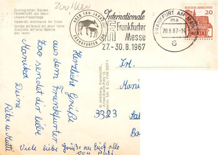 73942059 alte Postkarte Loewe Lion– Zoologischer Garten Frankfurt am Main postalisch gelaufen Erhaltung siehe scans [IrynaD87] KatCode: 22540000003300