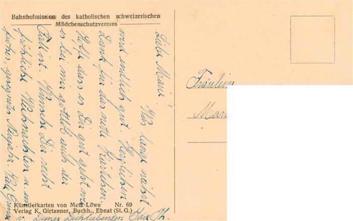 Loewe Meta Kuenstlerkarte Nr. 69 Maedchen Friedenbote