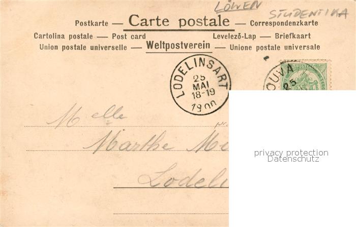 33567439 carte postale Loewen Louvain Studentika postalisch gelaufen Erhaltung siehe scans [KathaD81] KatCode: 11070024000389