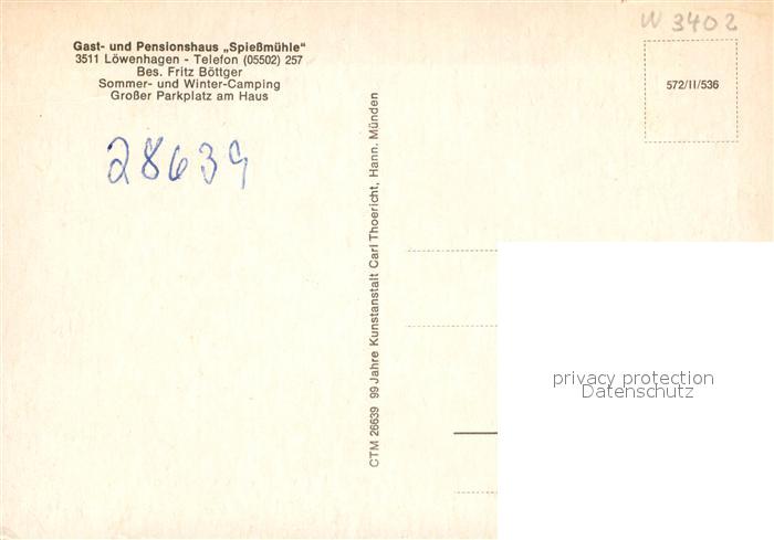 73618038 Loewenhagen Gast und Pensionshaus Spiessmuehle postalisch nicht gelaufen Erhaltung siehe scans [KathaD81] KatCode: 11110003152017