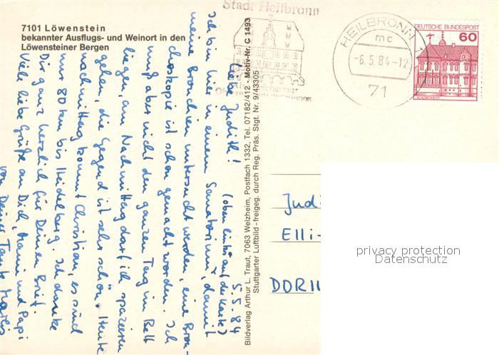 73629293 alte Postkarte Loewenstein Ausflugsort Weinort Loewensteiner Berge Fliegeraufnahme postalisch gelaufen Erhaltung siehe scans [FriedD77] KatCode: 11110008125059