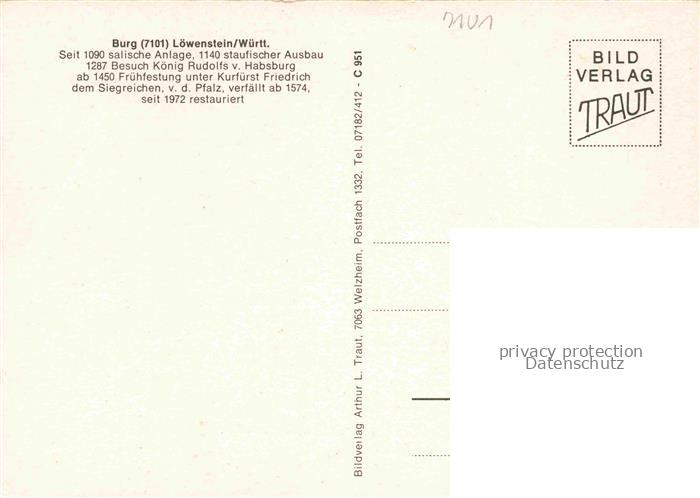 74052797 Loewenstein Heilbronn BW Burg postalisch nicht gelaufen Erhaltung siehe scans [FriedD77] KatCode: 11110008125059