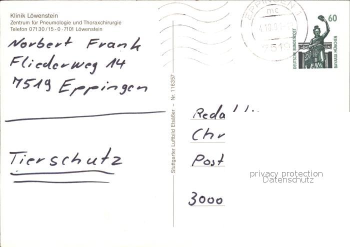 72465643 alte Postkarte Loewenstein Klinik Loewenstein Fliegeraufnahme postalisch gelaufen Erhaltung siehe scans KatCode: 11110008125059