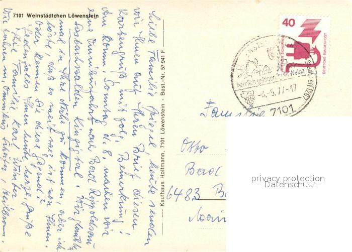 73111968 alte Postkarte Loewenstein postalisch gelaufen Erhaltung siehe scans [NatalD47] KatCode: 11110008125059