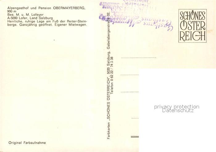 13101830 Lofer Alpengasthof Obermayerberg postalisch nicht gelaufen Erhaltung siehe scans [NatalD47] KatCode: 11390322050610