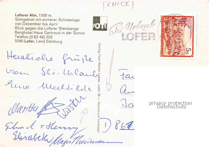 74005783 alte Postkarte Lofer AT Winterpanorama Schigebiet Loferer Steinberge Loferer Alm postalisch gelaufen Erhaltung siehe scans [FriedD77] KatCode: 11390322050610