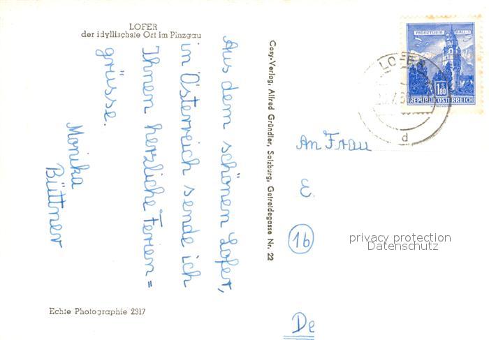 73272494 alte Postkarte Lofer Braeu Auer Kirchl Gasthof Zur Post Saalach postalisch gelaufen Erhaltung siehe scans [KathaD81] KatCode: 11390322050610