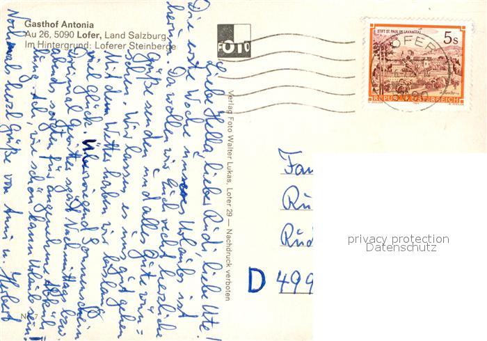 73083291 alte Postkarte Lofer Gasthaus Antonia postalisch gelaufen Erhaltung siehe scans [KathaD81] KatCode: 11390322050610