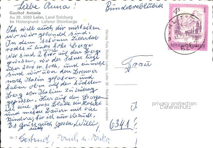72479138 alte Postkarte Lofer Gasthof Antonia postalisch gelaufen Erhaltung siehe scans KatCode: 11390322050610