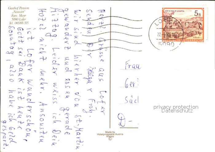 72438138 alte Postkarte Lofer Gasthof Neuwirt postalisch gelaufen Erhaltung siehe scans KatCode: 11390322050610