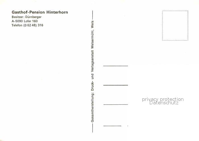 72666682 Lofer Gasthof Pension Hinterhorn postalisch nicht gelaufen Erhaltung siehe scans [FriedD77] KatCode: 11390322050610