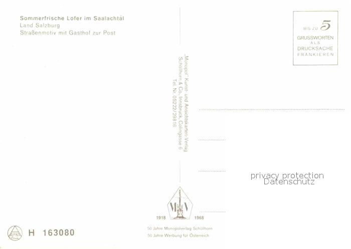 72886700 Lofer Gasthof zur Post postalisch nicht gelaufen Erhaltung siehe scans [WerneD78] KatCode: 11390322050610