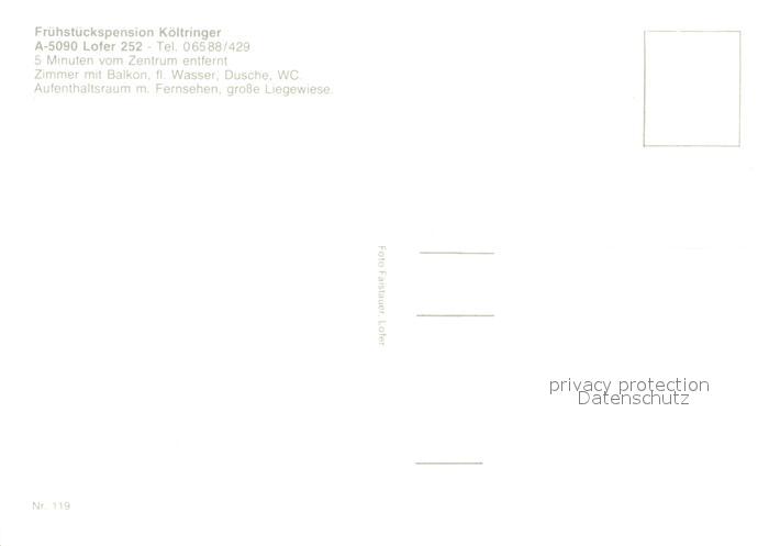 13218173 Lofer Haus Koeltringer Pension postalisch nicht gelaufen Erhaltung siehe scans [LiesaD40] KatCode: 11390322050610