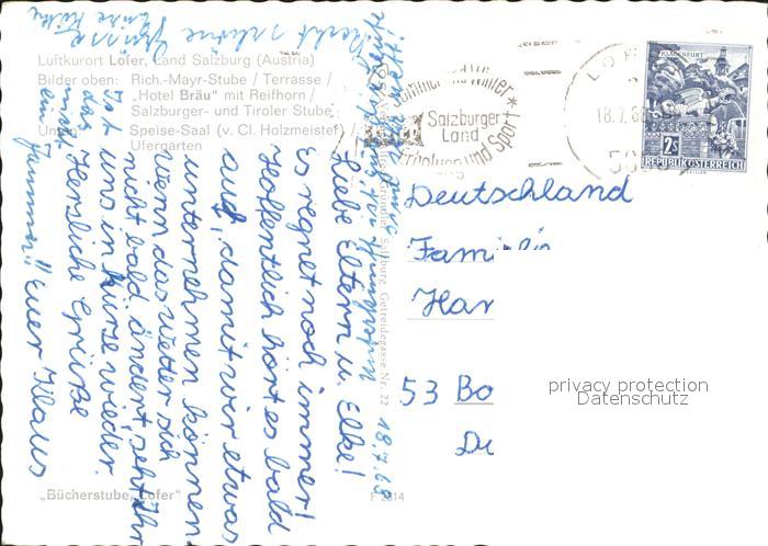 71908731 alte Postkarte Lofer Hotel Braeu postalisch gelaufen Erhaltung siehe scans KatCode: 11390322050610
