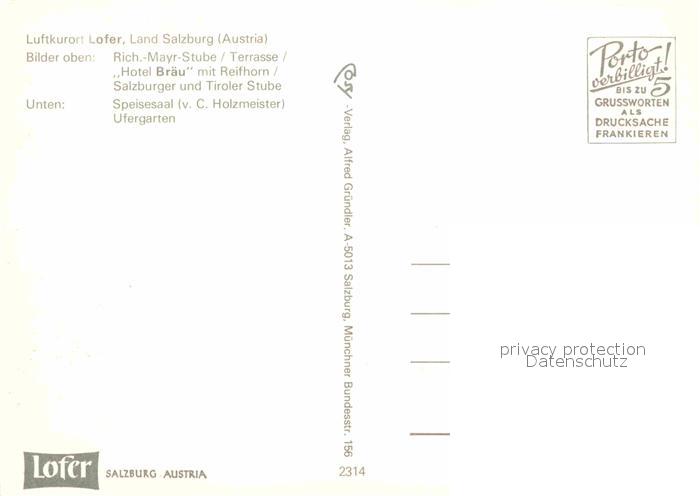 72701194 Lofer Hotel Braeu Speisesaal Salzburger Tiroler Stube postalisch nicht gelaufen Erhaltung siehe scans [KathaD79] KatCode: 11390322050610