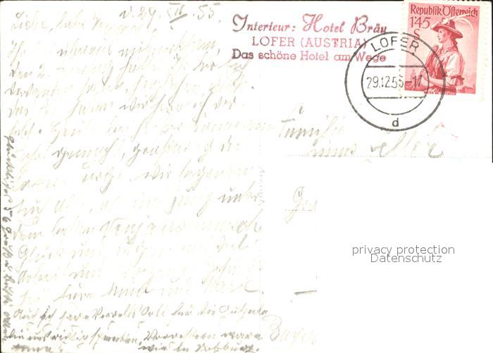72093865 alte Postkarte Lofer Hotel Braeu postalisch gelaufen Erhaltung siehe scans KatCode: 11390322050610