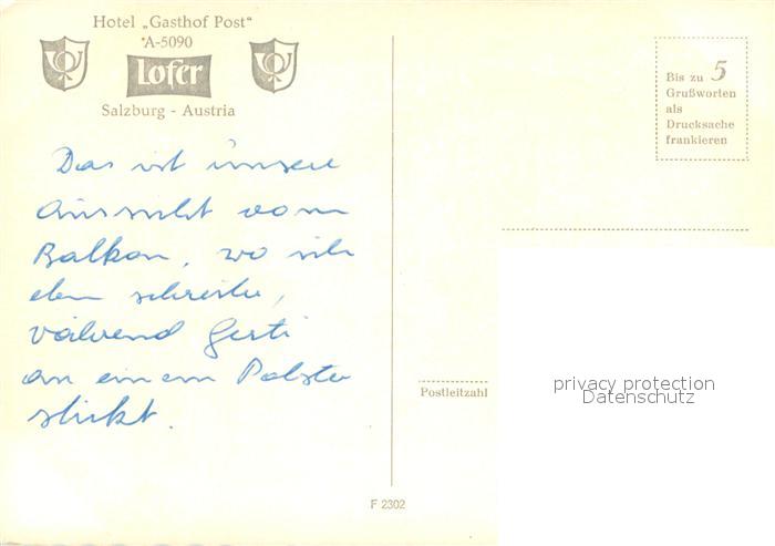 73642328 Lofer Hotel Gasthof Post postalisch nicht gelaufen Erhaltung siehe scans [WerneD78] KatCode: 11390322050610