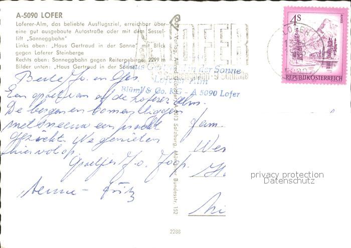 72094839 alte Postkarte Lofer Loferer Alm Sessellift Haus Gertrud Loferer Steinberge postalisch gelaufen Erhaltung siehe scans KatCode: 11390322050610