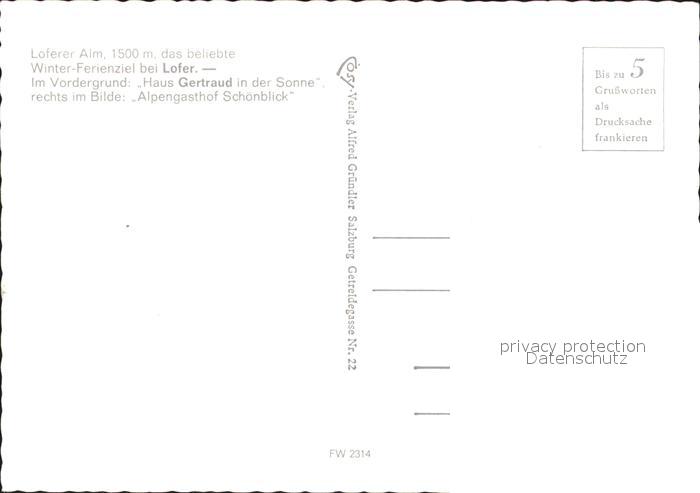 71962119 Lofer Loferer Alm Skigebiet Haus Gertraud in der Sonne postalisch nicht gelaufen Erhaltung siehe scans KatCode: 11390322050610