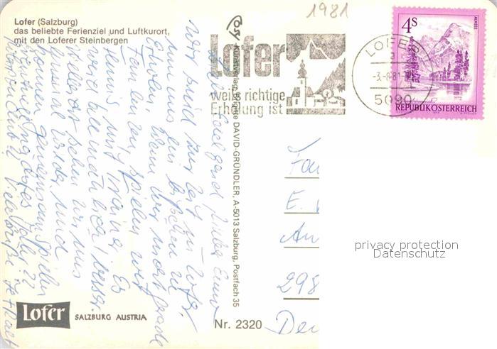 72909281 alte Postkarte Lofer Loferer Steinberge postalisch gelaufen Erhaltung siehe scans [NatalD47] KatCode: 11390322050610
