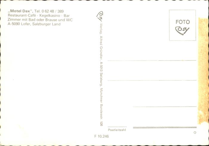 71431733 Lofer Motel Dax Restaurant Kegelkasino Kirche Loferer Steinberge postalisch nicht gelaufen Erhaltung siehe scans KatCode: 11390322050610