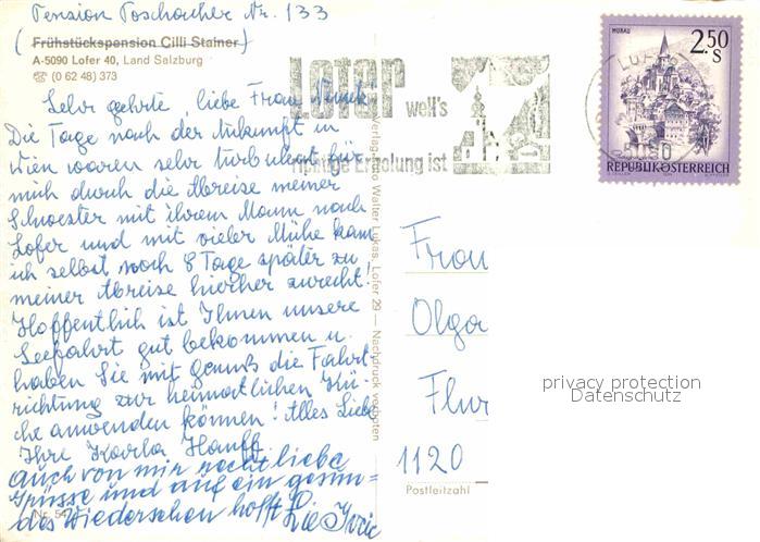 72761158 alte Postkarte Lofer Pension Cilli Stainer postalisch gelaufen Erhaltung siehe scans [LiesaD40] KatCode: 11390322050610