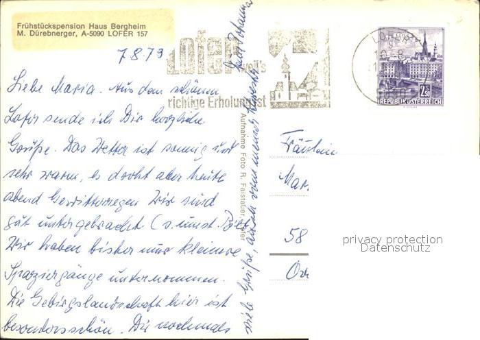 72437334 alte Postkarte Lofer Pension Haus Bergheim postalisch gelaufen Erhaltung siehe scans KatCode: 11390322050610