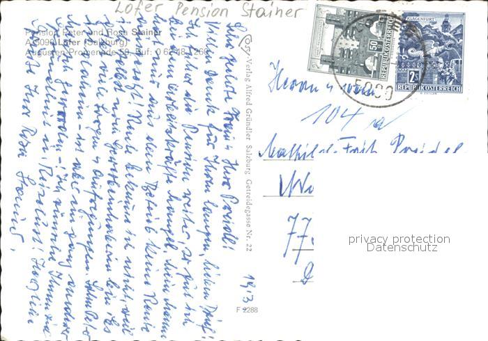 72494516 alte Postkarte Lofer Pension Steiner postalisch gelaufen Erhaltung siehe scans KatCode: 11390322050610
