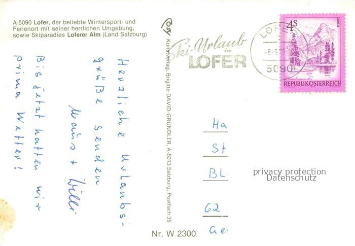 74027177 alte Postkarte Lofer Pinzgau-Pongau AT Panorama Ferienort Wintersportplatz Skiparadies Loferer Steinberge postalisch gelaufen Erhaltung siehe scans [FriedD77] KatCode: 11390322050610