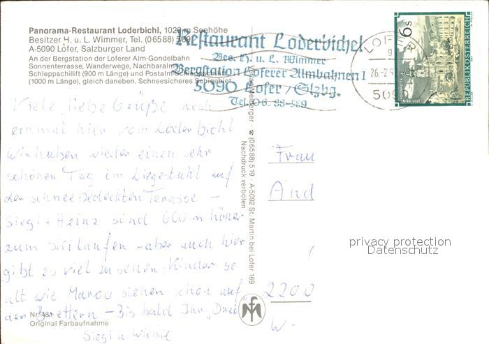 72286641 alte Postkarte Lofer Restaurant Loderbichel postalisch gelaufen Erhaltung siehe scans KatCode: 11390322050610