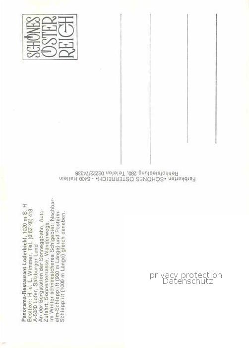 72859949 Lofer Restaurant Loderbichl Sonnegg Bergstation postalisch nicht gelaufen Erhaltung siehe scans [LiesaD40] KatCode: 11390322050610