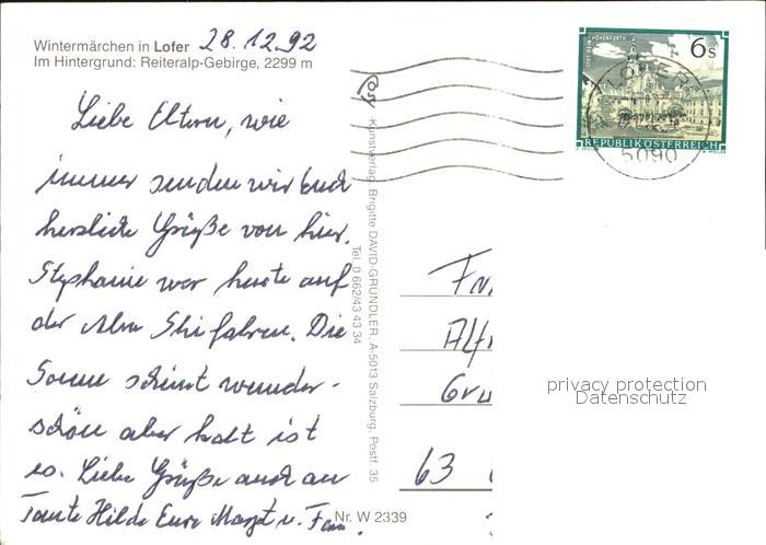 72395640 alte Postkarte Lofer Saalachtal Lofereralm Wintermaerchen Reiteralp postalisch gelaufen Erhaltung siehe scans KatCode: 11390322050610