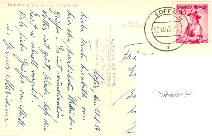 73154942 alte Postkarte Lofer Teufelsstieg mit den Steinbergen postalisch gelaufen Erhaltung siehe scans [WerneD78] KatCode: 11390322050610