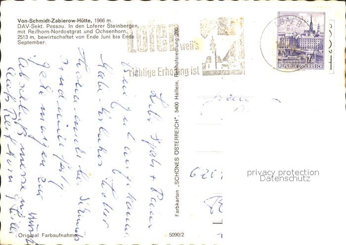 71953979 alte Postkarte Lofer Von Schmidt Zabierow Huette Loferer Steinbergen postalisch gelaufen Erhaltung siehe scans KatCode: 11390322050610