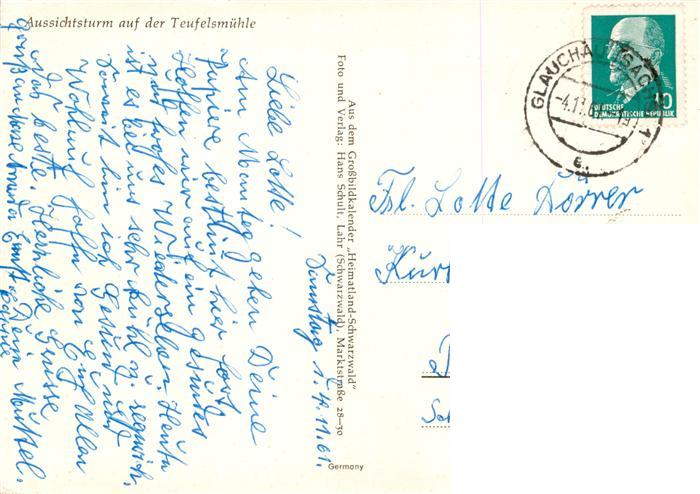 73947111 alte Postkarte Loffenau Bad Herrenalb Aussichtsturm auf der Teufelsmuehle Hoehengasthaus postalisch gelaufen Erhaltung siehe scans [FriedD77] KatCode: 11110008235033