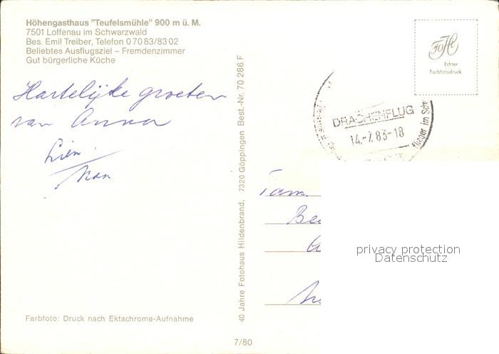 72268588 alte Postkarte Loffenau Bad Herrenalb Hoehengasthaus Teufelsmuehle postalisch gelaufen Erhaltung siehe scans KatCode: 11110008235033