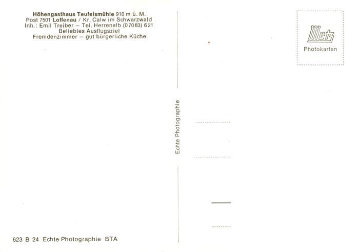 73947104 Loffenau Bad Herrenalb Hoehengasthaus Teufelsmuehle Aussichtsturm Schwarzwald postalisch nicht gelaufen Erhaltung siehe scans [FriedD77] KatCode: 11110008235033