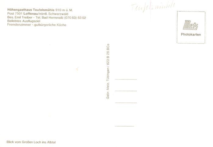 73947112 Loffenau Bad Herrenalb Hoehengasthaus Teufelsmuehle Blick vom Grossen Loch ins Albtal postalisch nicht gelaufen Erhaltung siehe scans [FriedD77] KatCode: 11110008235033