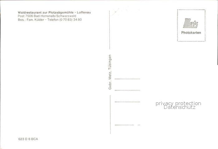 41767992 Loffenau Bad Herrenalb Waldrestaurant zur Plotzsaegemuehle postalisch nicht gelaufen Erhaltung siehe scans KatCode: 11110008235033