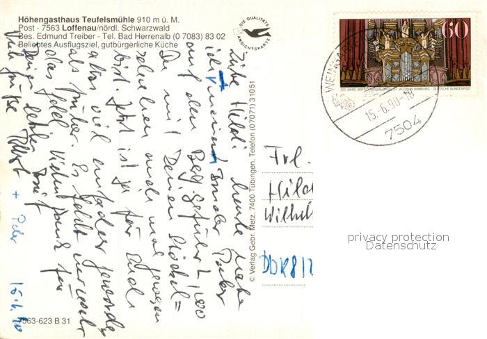 73704629 alte Postkarte Loffenau Rastatt Hoehengasthaus Teufelsmuehle Terrasse postalisch gelaufen Erhaltung siehe scans [FriedD77] KatCode: 11110008216029
