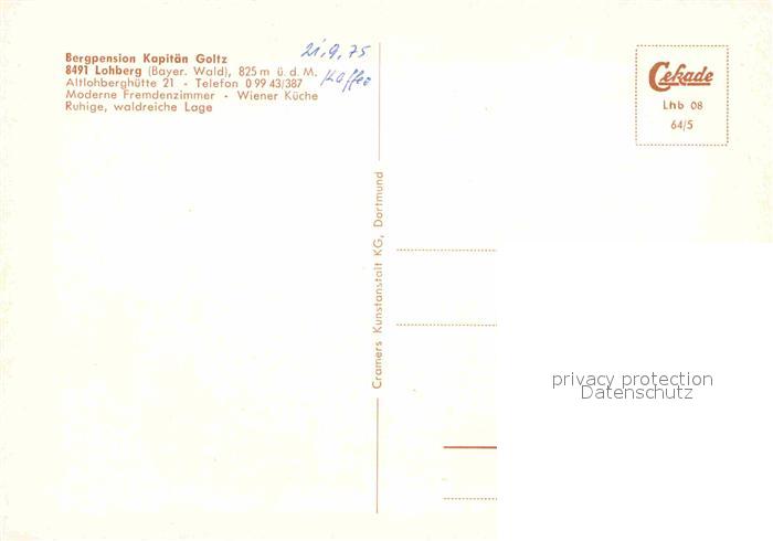 72855653 Lohberg Lam Bergpension Kapitaen Goltz postalisch nicht gelaufen Erhaltung siehe scans [AndreD76] KatCode: 11110009372178